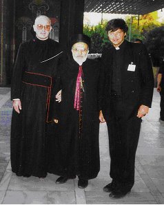 Emmanuel III with Fr John Salter and Fr Roman Cholij (Ukrainian Catholic)