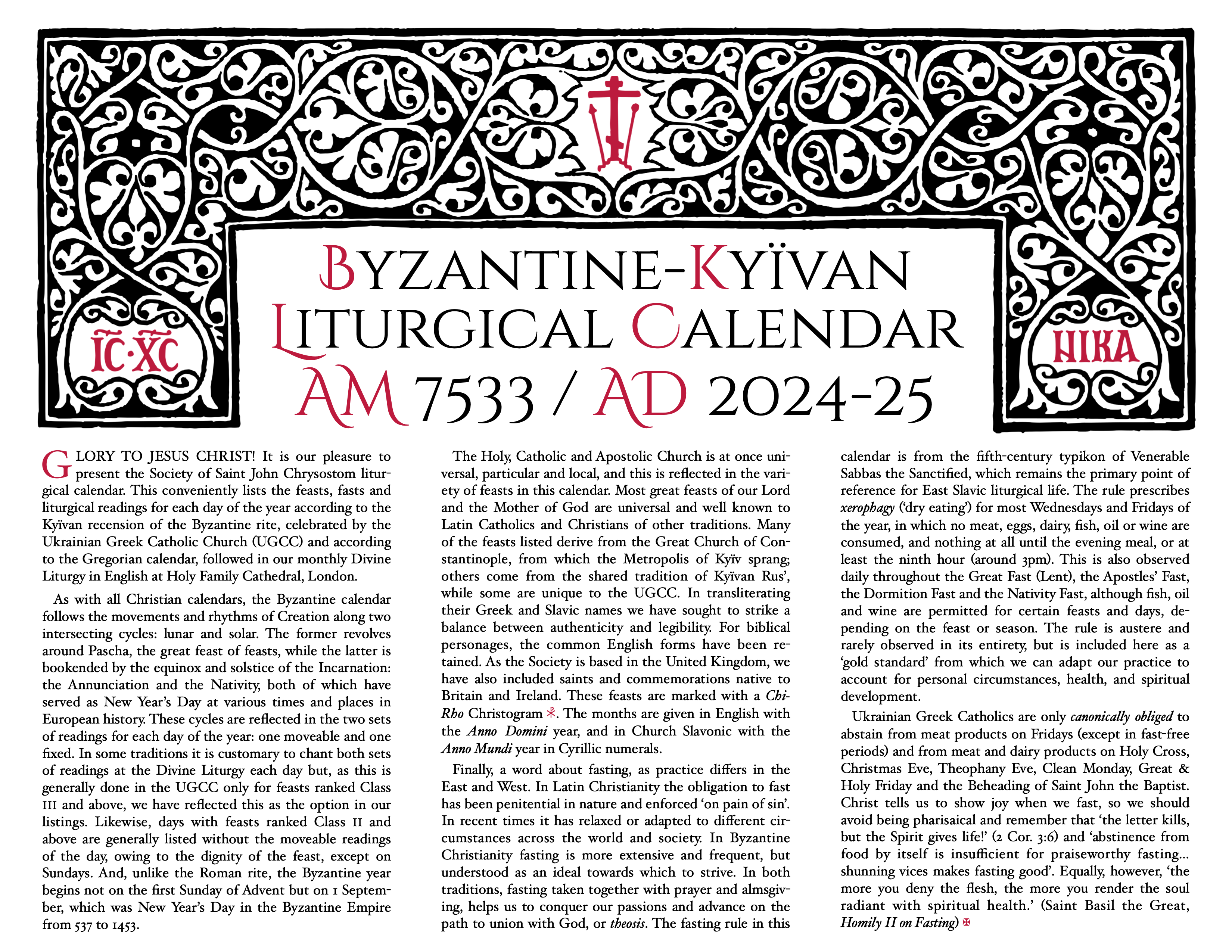 The Society has published its Byzantine liturgical calendar for the year 2024/25 (Anno Mundi 7533).