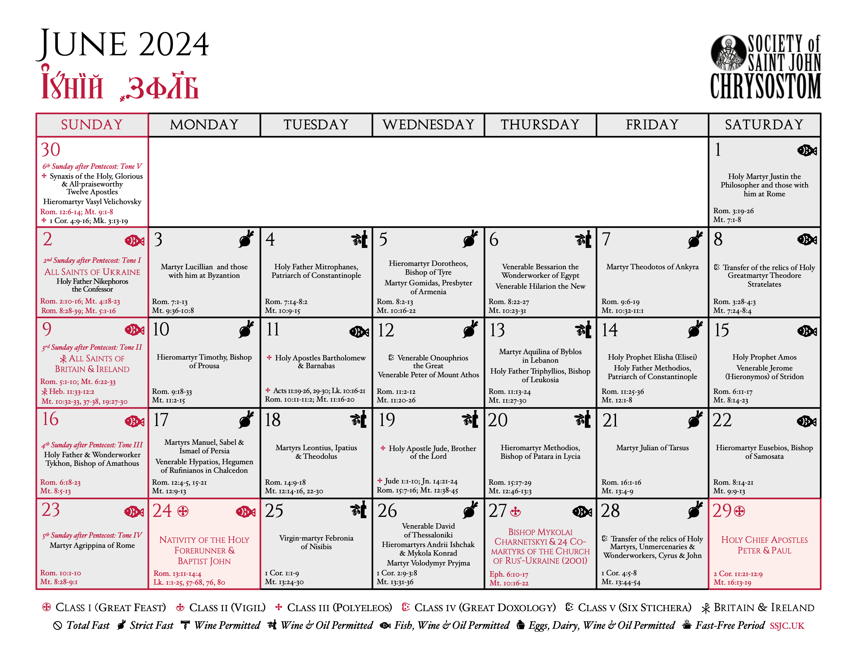 The Society has published its Byzantine liturgical calendar for June 2024.
