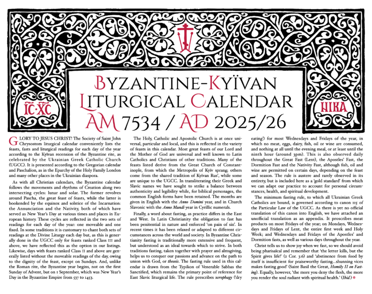 The Society has published its Byzantine liturgical calendar for the year 2024/25 (Anno Mundi 7533). The menologion, as it is…