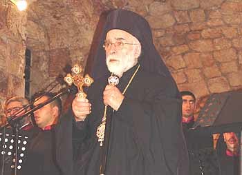 The late Metropolitan Elias of Tripoli and Koura blessing the choir of the Institute of Theology of the University of Balamand on the Feast of St John of Damascus, December 2004
